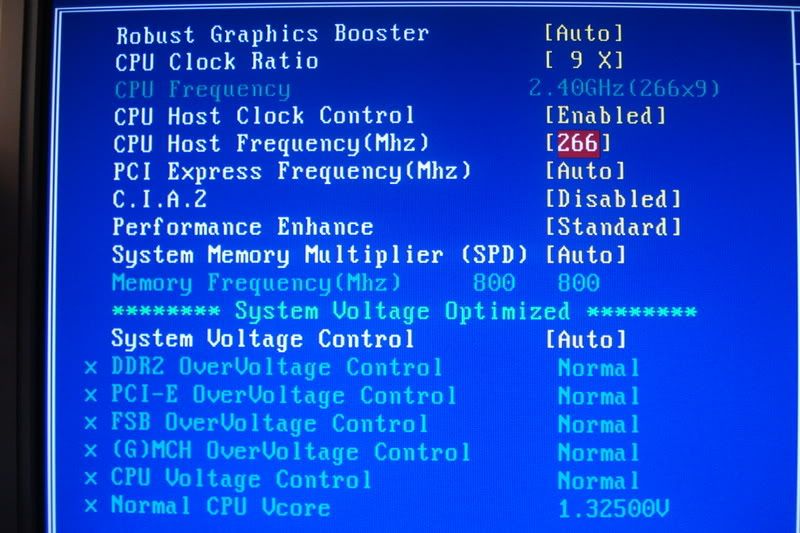 ANYWAY, to get to my actual question- my bios is reading a RAM rated number that's equal to the actual number it's set on, and when I up the FSB, the number changes to go way above the rated speed. I read this was never good to do, but to get my CPU to over 2.4 (266 x 9), I have to raise the FSB im assuming. Is there any way to overclock this rig safely and get some decent OC speeds out of it without frying a component or two? I've read up and havent found any situations like the one I'm in, so thanks for your help =D!